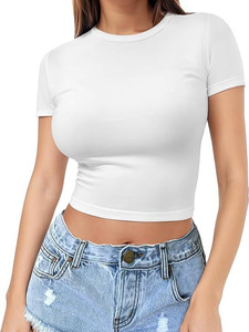 T-shirt femme européenne et américaine pull d'été haut femme mince col rond T-shirt à la mode manches courtes