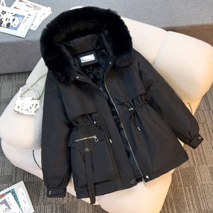 Invierno nueva versión coreana cintura de moda estilo corto con chaqueta de mujer gruesa de felpa