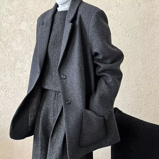Moda Otoño e Invierno Mujer Moda Cuello con muescas Abrigo sólido de un solo pecho