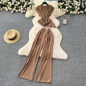 Thời Trang Phù Hợp Với Phụ Nữ Của Mùa Hè Không Thường Xuyên Không Tay Hàng Đầu Cao Eo Rộng Chân Thẳng Chân Quần Bộ